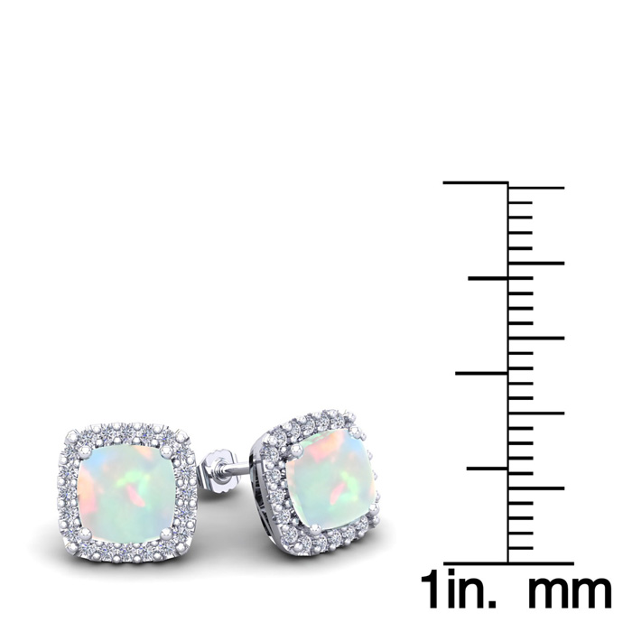 2 1/4 Carat Cushion Cut Opal and Halo Diamond Earrings In Sterling Silver