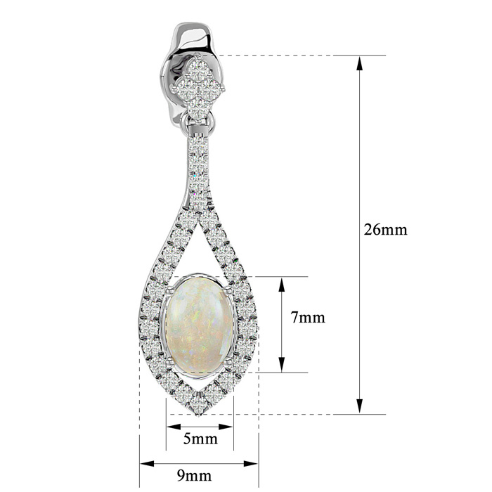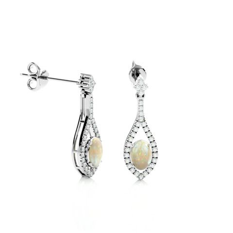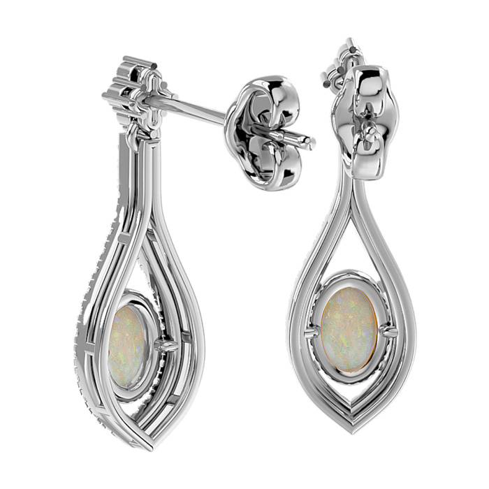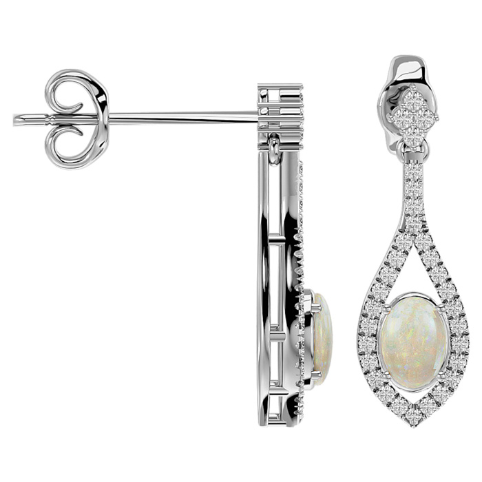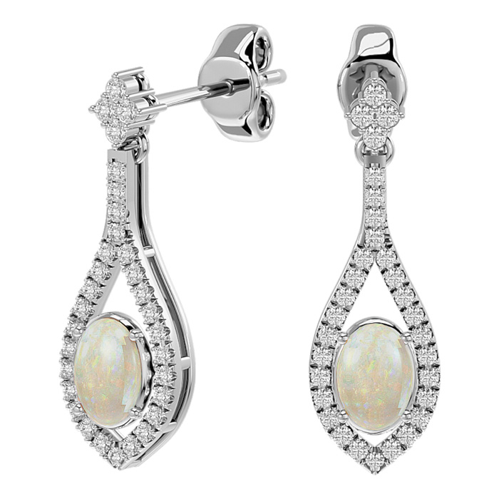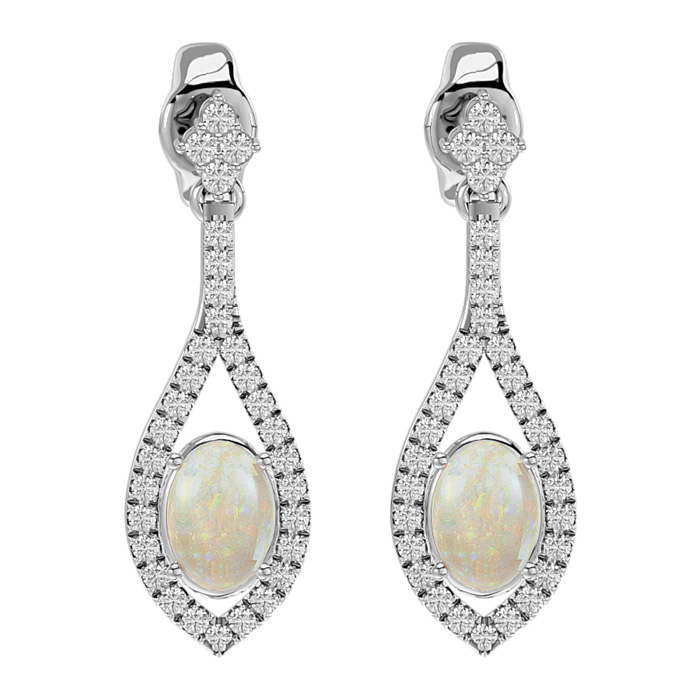 2 Carat Oval Shape Opal and Diamond Dangle Earrings In 14 Karat White Gold