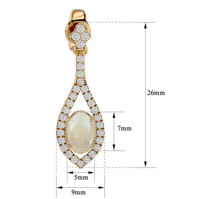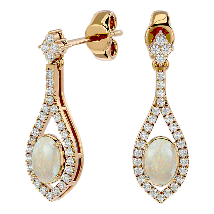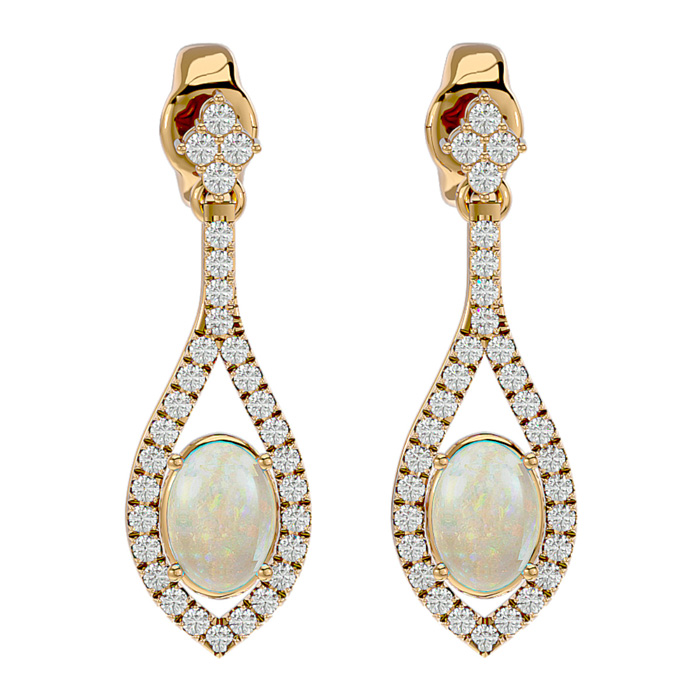 2 Carat Oval Shape Opal and Diamond Dangle Earrings In 14 Karat Yellow Gold