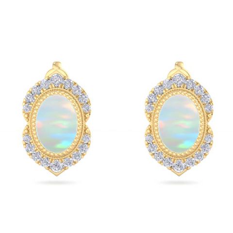 2 Carat Oval Shape Opal and Diamond Earrings In 14K Yellow Gold