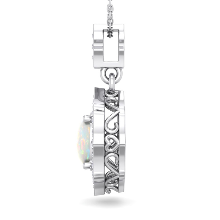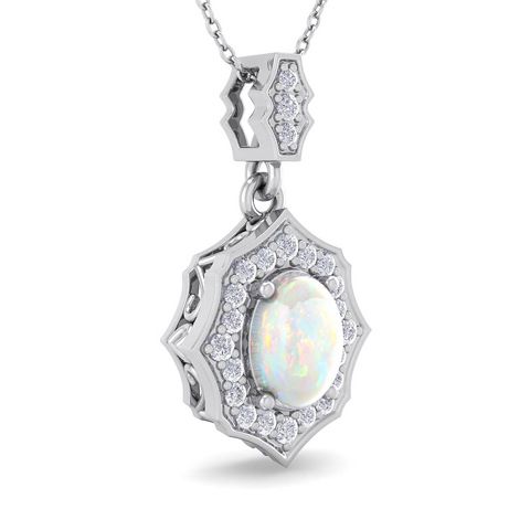 1-1/4 Carat Oval Shape Opal and Diamond Necklace In 14 Karat White Gold, 18 Inches