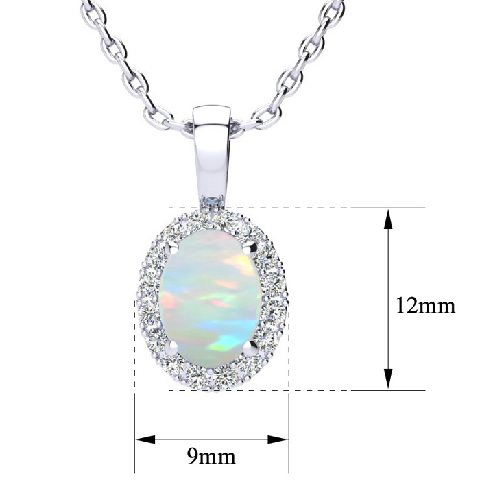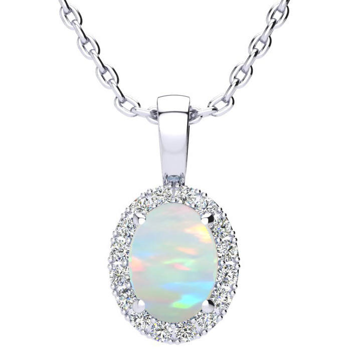 1 1/4 Carat Oval Shape Opal and Halo Diamond Necklace In Sterling Silver With 18 Inch Chain
