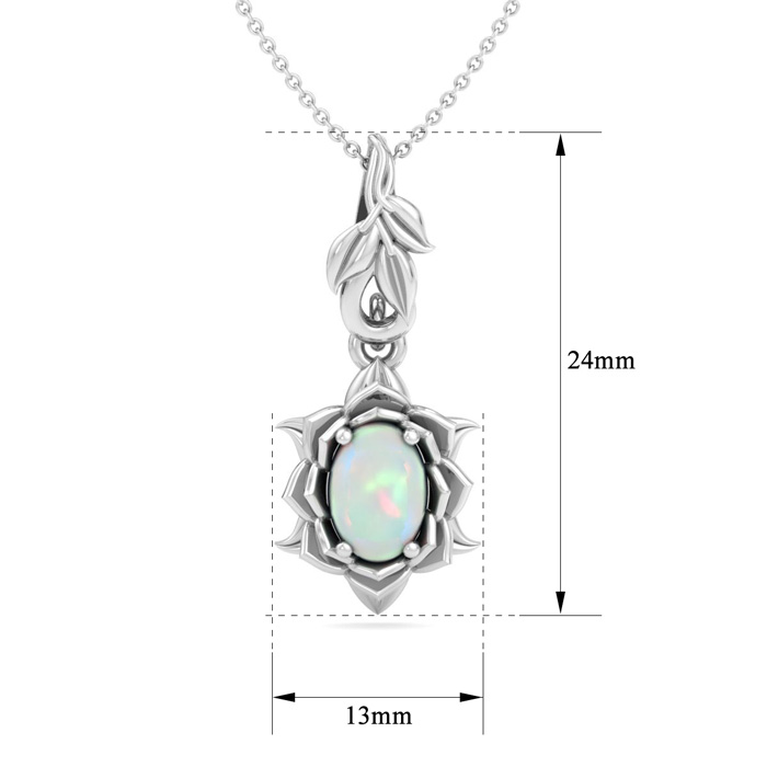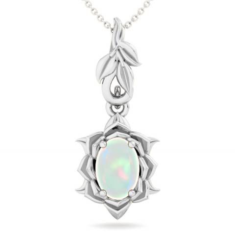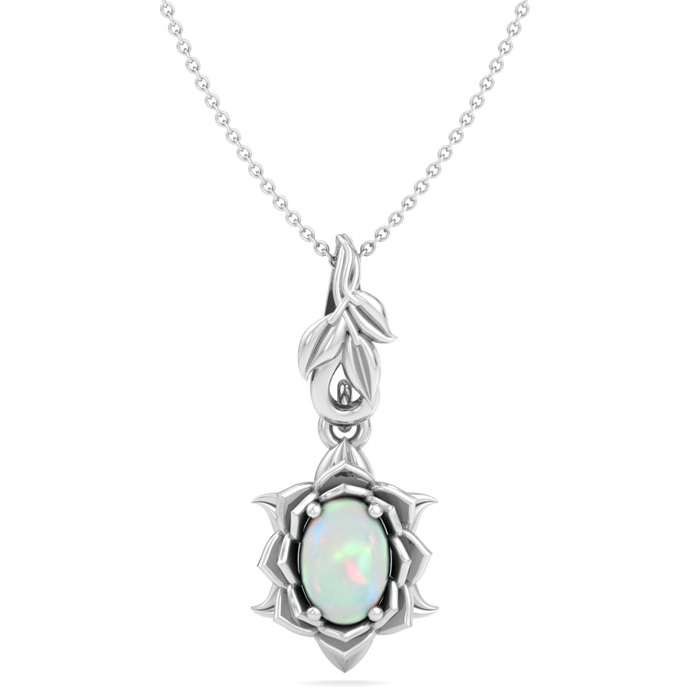 3/4 Carat Oval Shape Opal Ornate Necklace In 14K White Gold