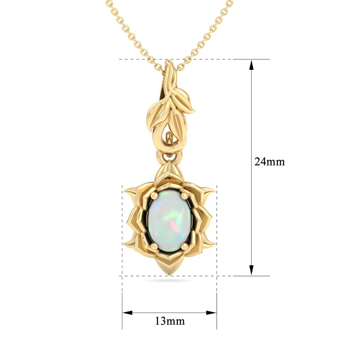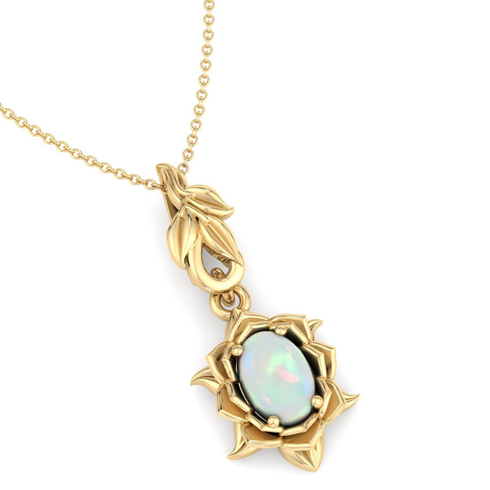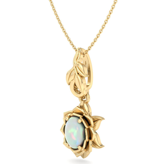3/4 Carat Oval Shape Opal Ornate Necklace In 14K Yellow Gold