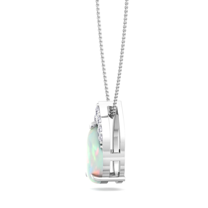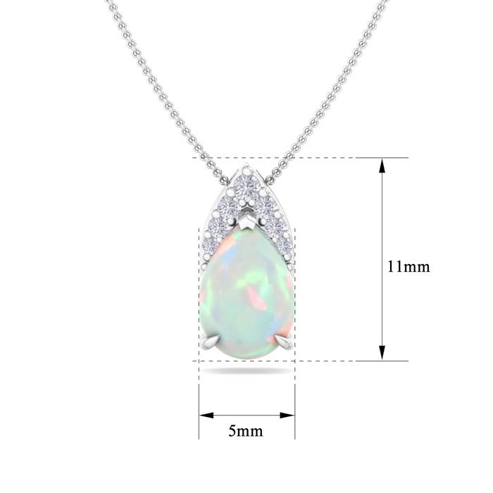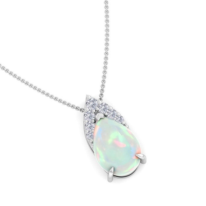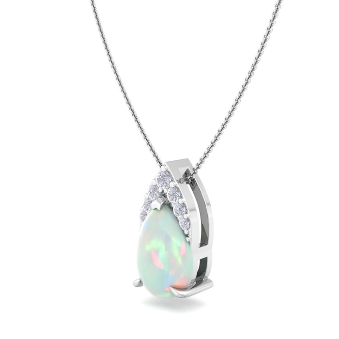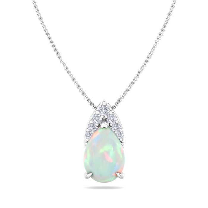 7/8 Carat Pear Shape Opal and Diamond Necklace In 14 Karat White Gold, 18 Inches