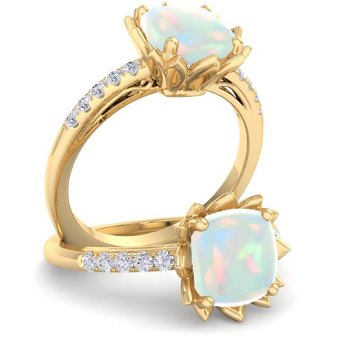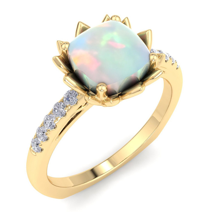 1-1/2 Carat Cushion Cut Opal and Diamond Ring In 14K Yellow Gold