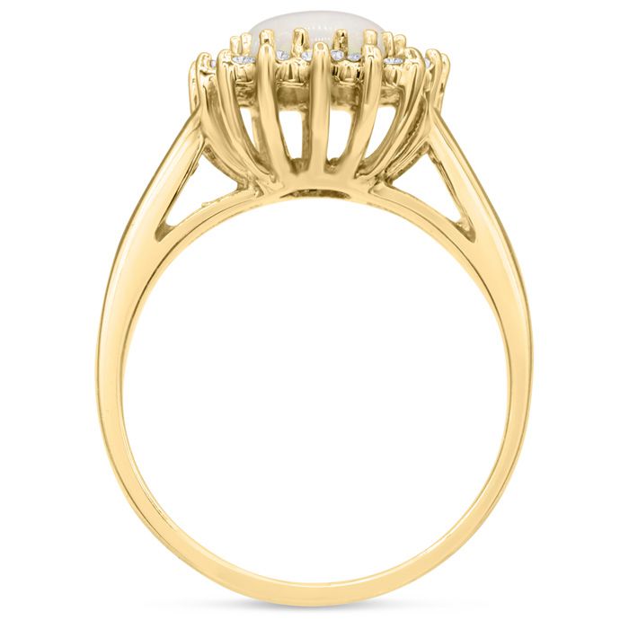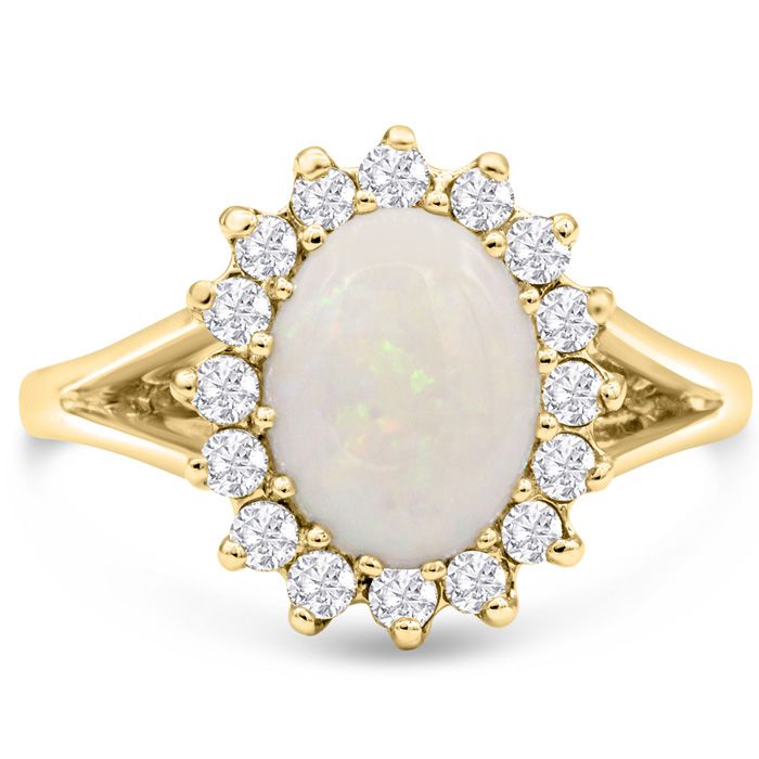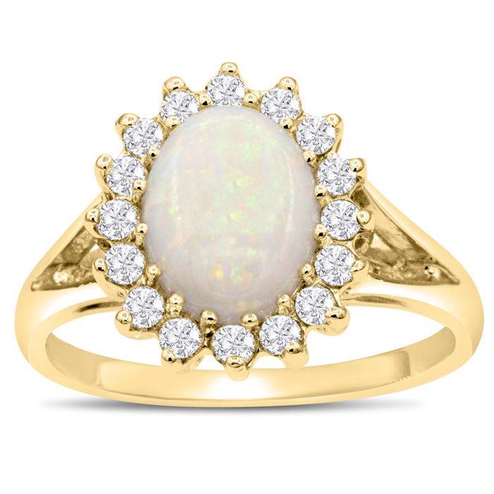 1-1/2 Carat Opal Ring and Halo Diamonds In 14 Karat Yellow Gold