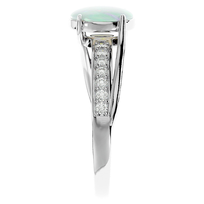 1 1/2 Carat Oval Shape Created Opal and Diamond Ring In Sterling Silver