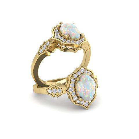 1-1/4 Carat Oval Shape Opal Ring with Diamonds In 14 Karat Yellow Gold