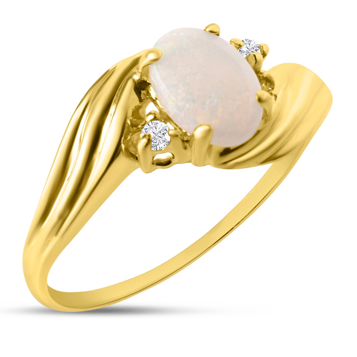 1/4 Carat Oval Opal Ring with .03ct Diamonds in 14k Yellow Gold