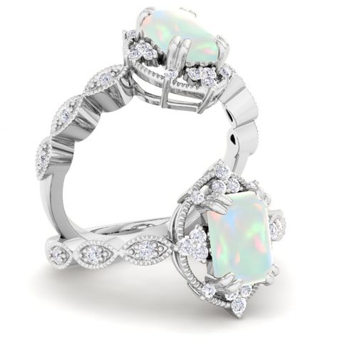 1 Carat Opal and Halo Diamond Ring In 14K White Gold