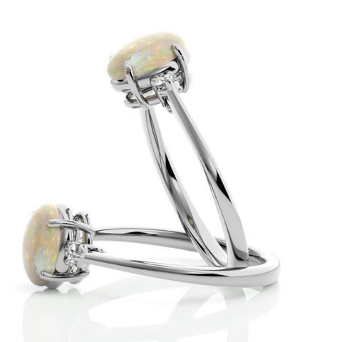 1 Carat Oval Shape Opal Ring with Two Diamonds In 14 Karat White Gold