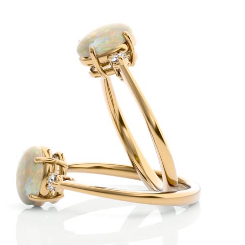 1 Carat Oval Shape Opal Ring with Two Diamonds In 14 Karat Yellow Gold