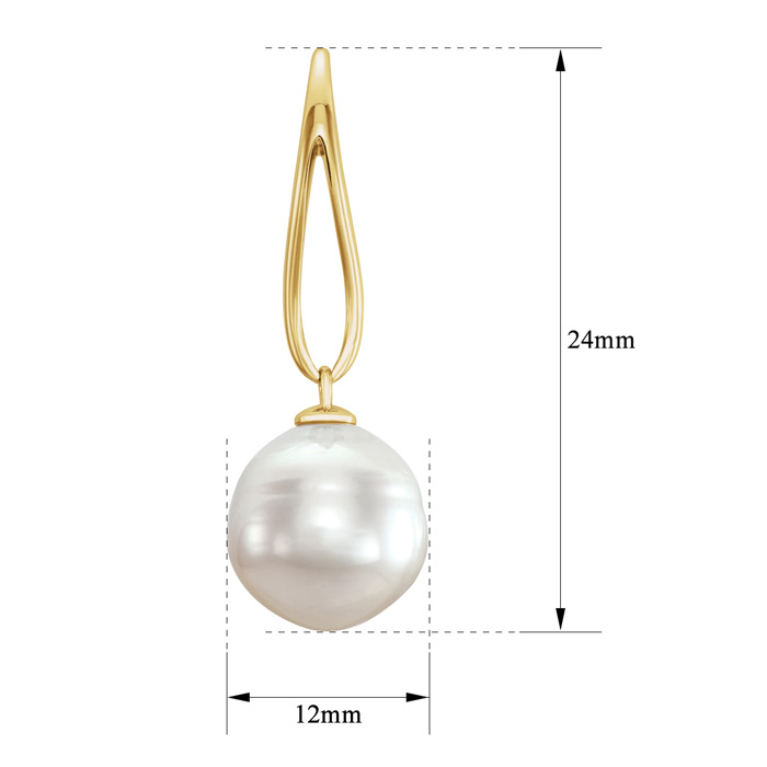 Pearl Drop Earrings With 12MM Freshwater Cultured Pearls In 14 Karat Yellow Gold, 1 Inch