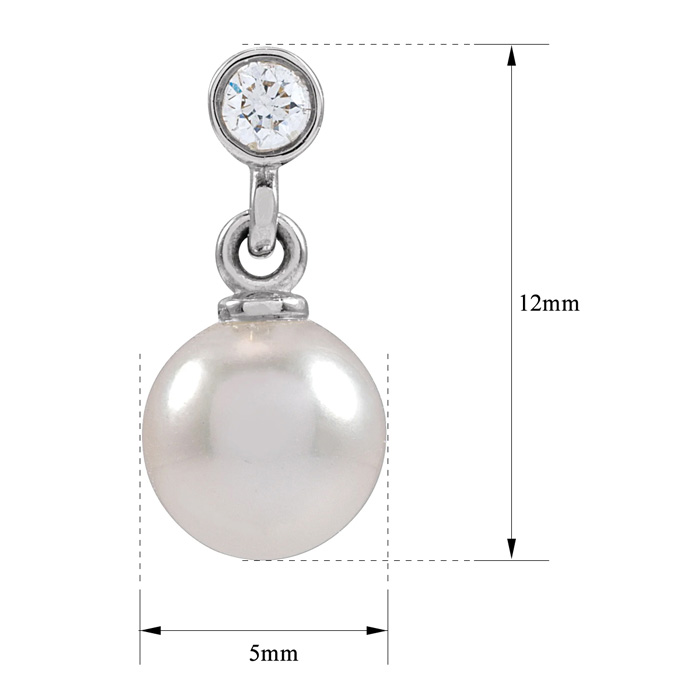Pearl Drop Earrings With 5MM Akoya Pearls and Diamonds In 14 Karat White Gold, 1/2 Inch