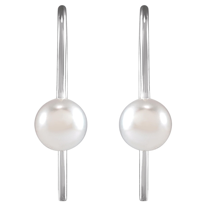 Pearl Drop Earrings With 6MM Akoya Pearls In 14 Karat White Gold, 1/2 Inch