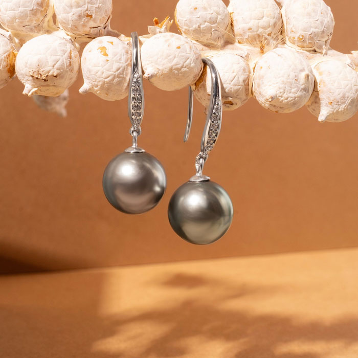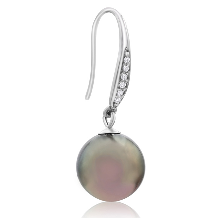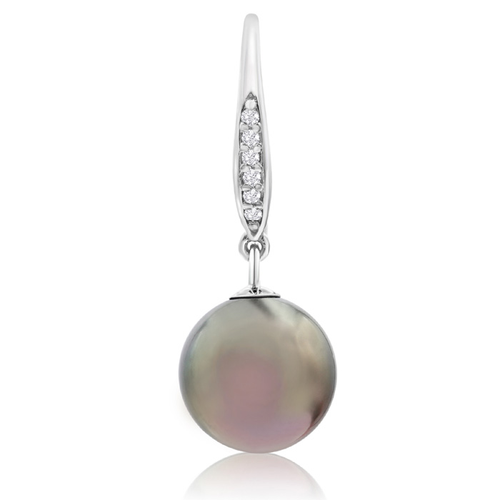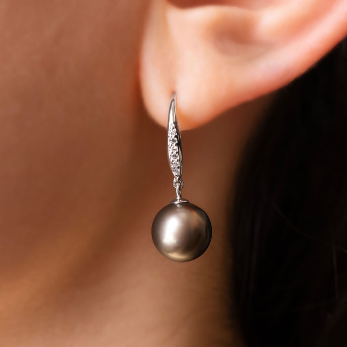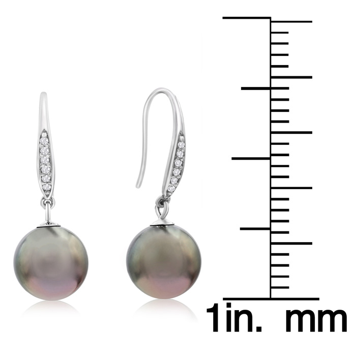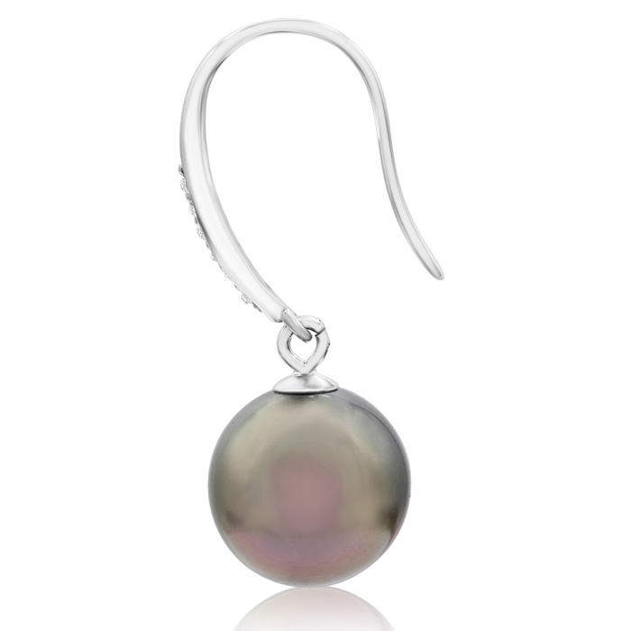 These pearl drop earrings are direct from the South Seas of Tahiti and SuperJeweler brings you natural black color Tahitian AAA fine quality Tahitian pearls. These earrings feature two 9-9.5mm AAA quality cultured Tahitian pearls with crystal accents. They dangle down 3/4 inch on 18 karat white gold fishhook backs.