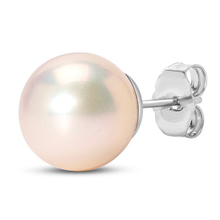 Retrograde Birthstones™ 9mm Cultured Pearl Stud Earrings in 14 Karat White Gold