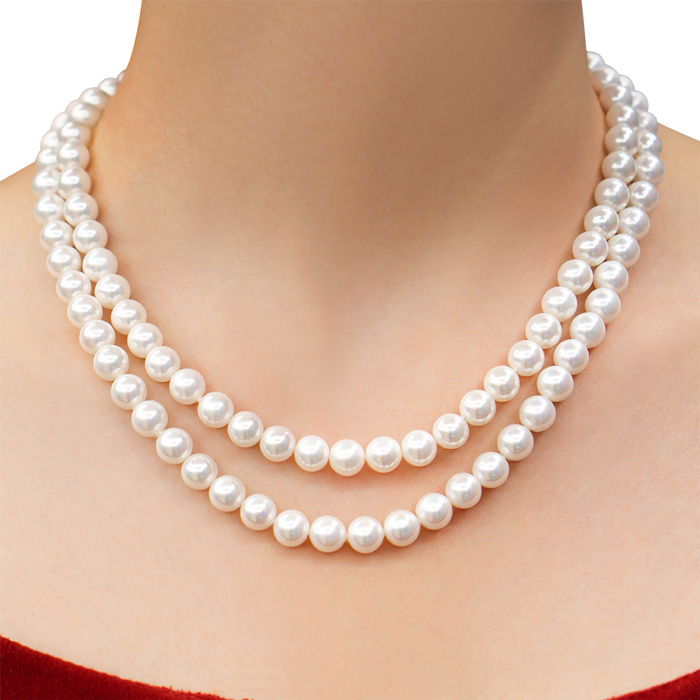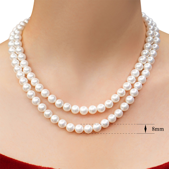 These glass beaded pearls have a little weight but are very pretty and have a shiny silky white color that brings them out on any garment color for any up scale or non formal occasion.or event. I’m a fair skinned redhead and they look beautiful on me. Because they are created with a beautiful color flare….they will look gorgeous on any skin color because they pop out but not overwhelmingly. And the clasps is a silver magnet that holds very tightly. Highly recommended. --ThisGigi .