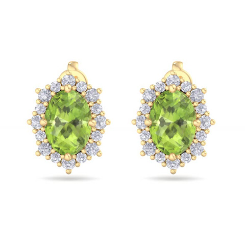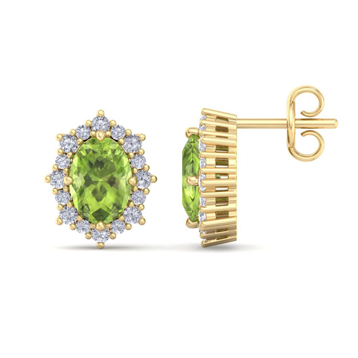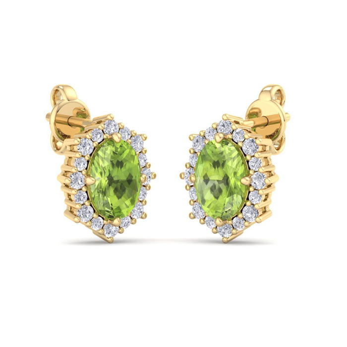 2 1/2 Carat Oval Shape Peridot and Diamond Earrings In 14K Yellow Gold