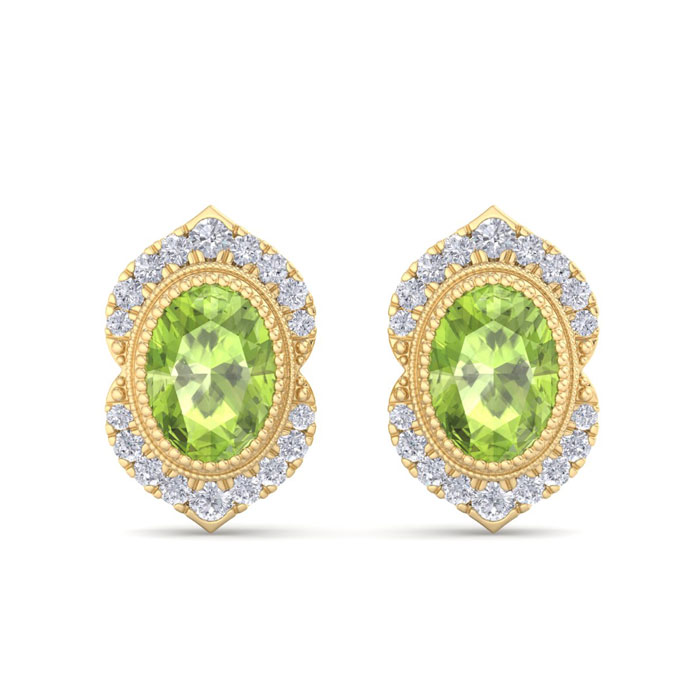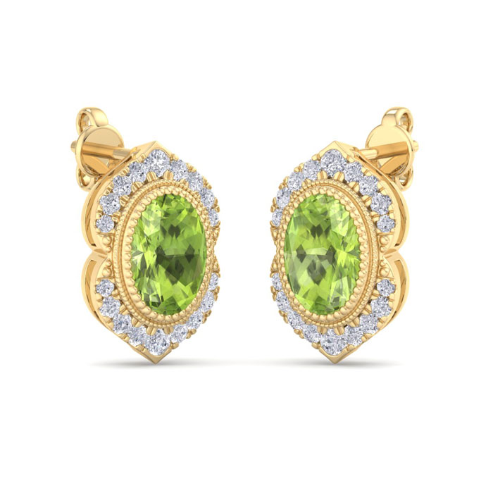2 1/2 Carat Oval Shape Peridot and Diamond Earrings In 14K Yellow Gold