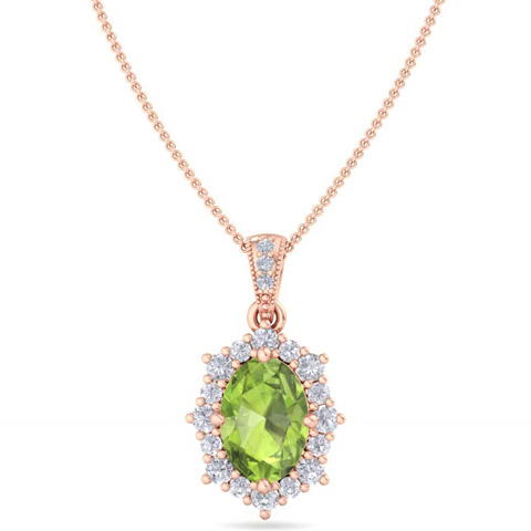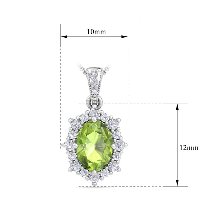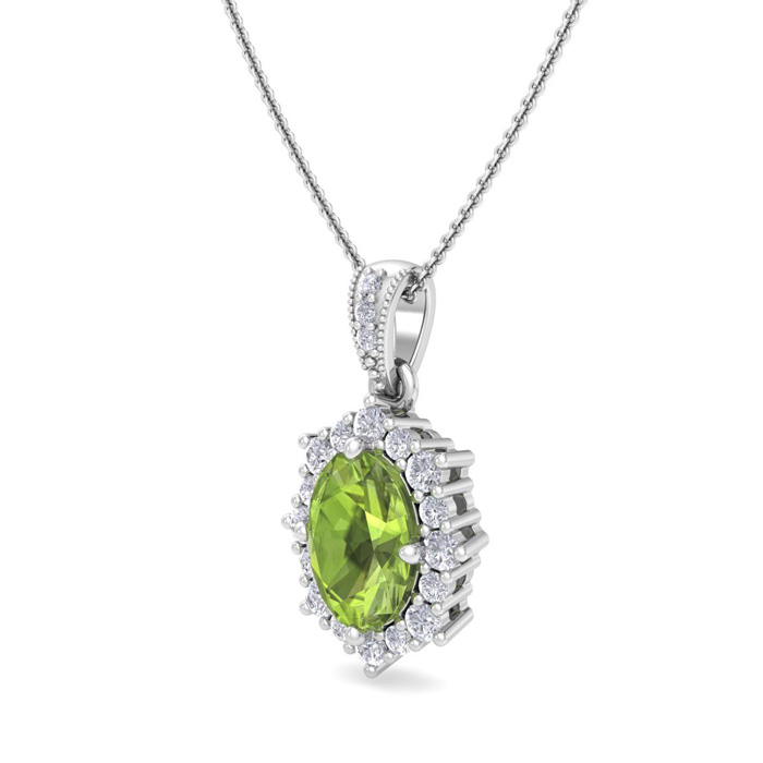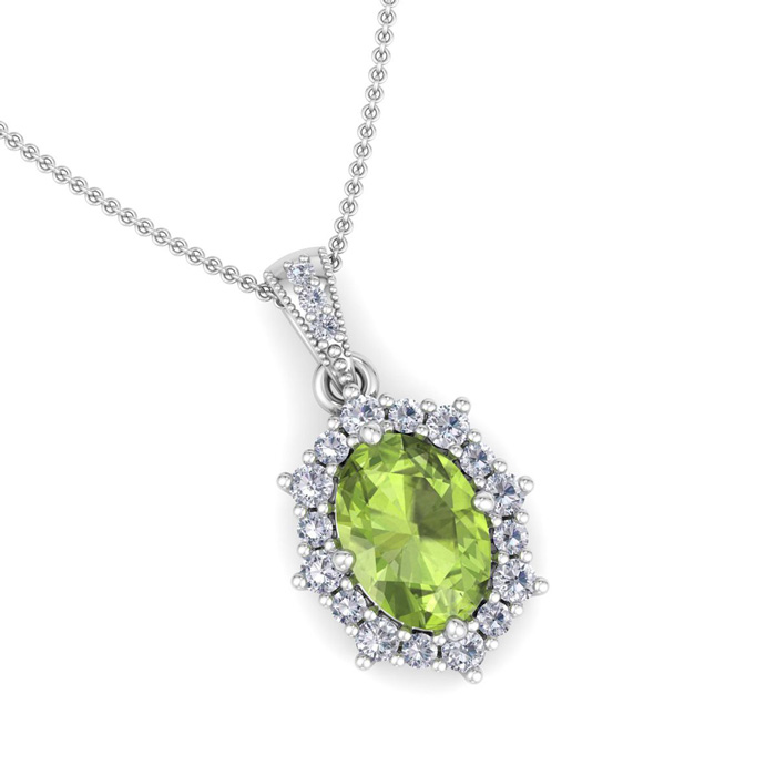 1 3/4 Carat Oval Shape Peridot and Diamond Necklace In 14K White Gold