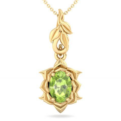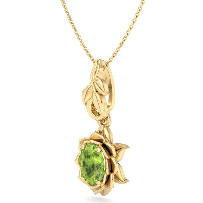 1 Carat Oval Shape Peridot Ornate Necklace In 14K Yellow Gold