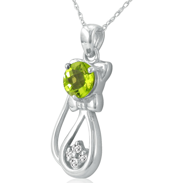 1 Carat Peridot and Diamond Cat Necklace In Sterling Silver With 18 Inch Chain