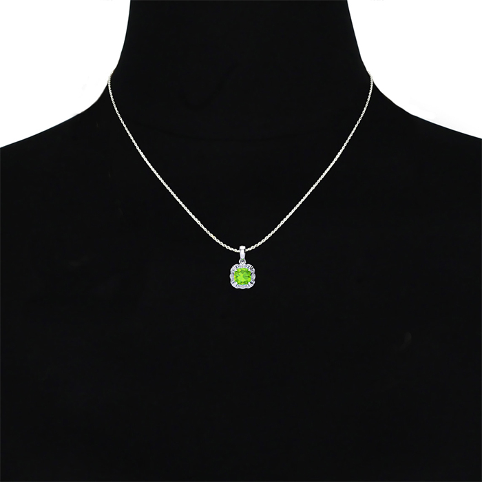 2 Carat Cushion Cut Peridot and Diamond Necklace In Sterling Silver With 18 Inch Chain
