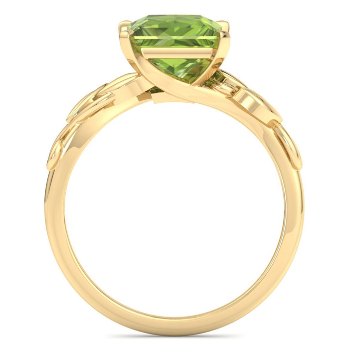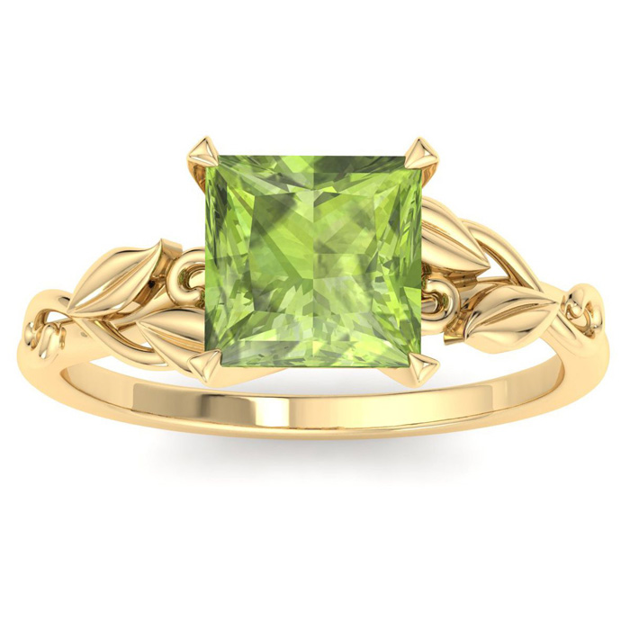 1 1/2 Carat Princess Shape Peridot Ornate Ring In 14K Yellow Gold