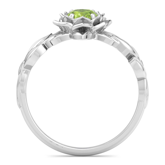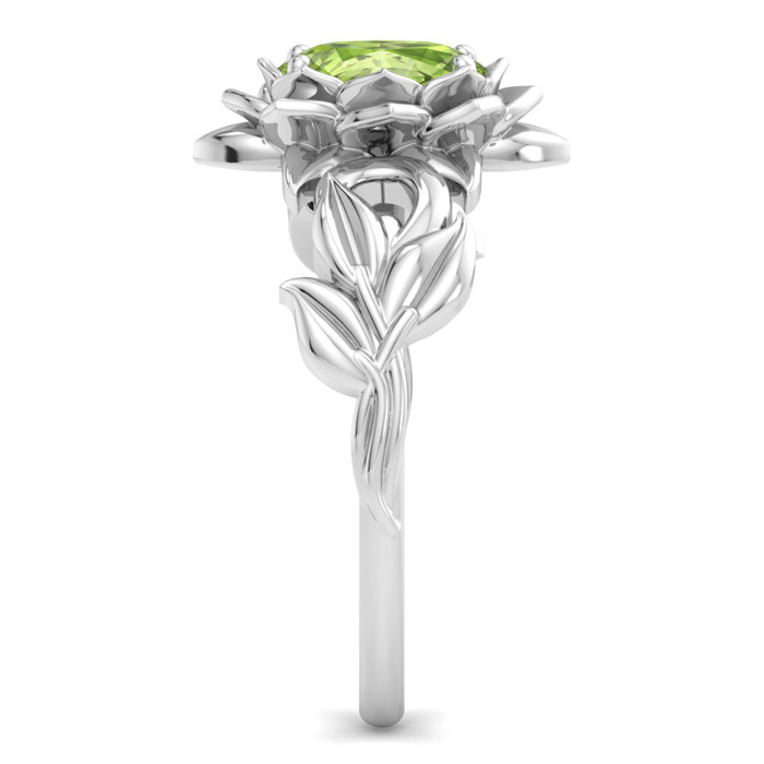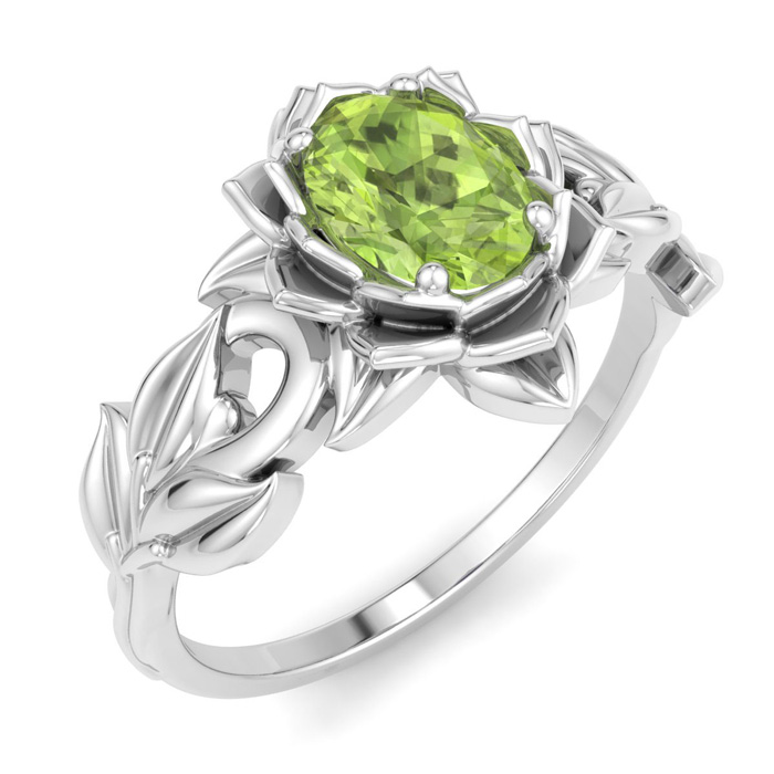 Retrograde Birthstones™ 1 Carat Oval Shape Peridot Ornate Ring In 14K White Gold