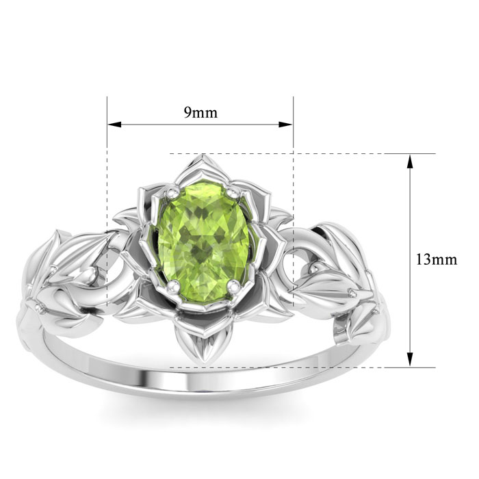 Retrograde Birthstones™ 1 Carat Oval Shape Peridot Ornate Ring In 14K White Gold