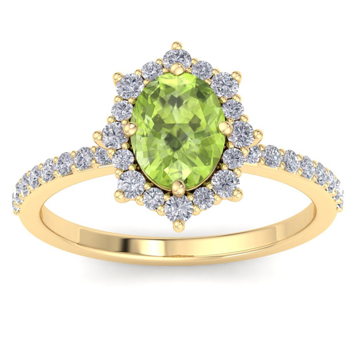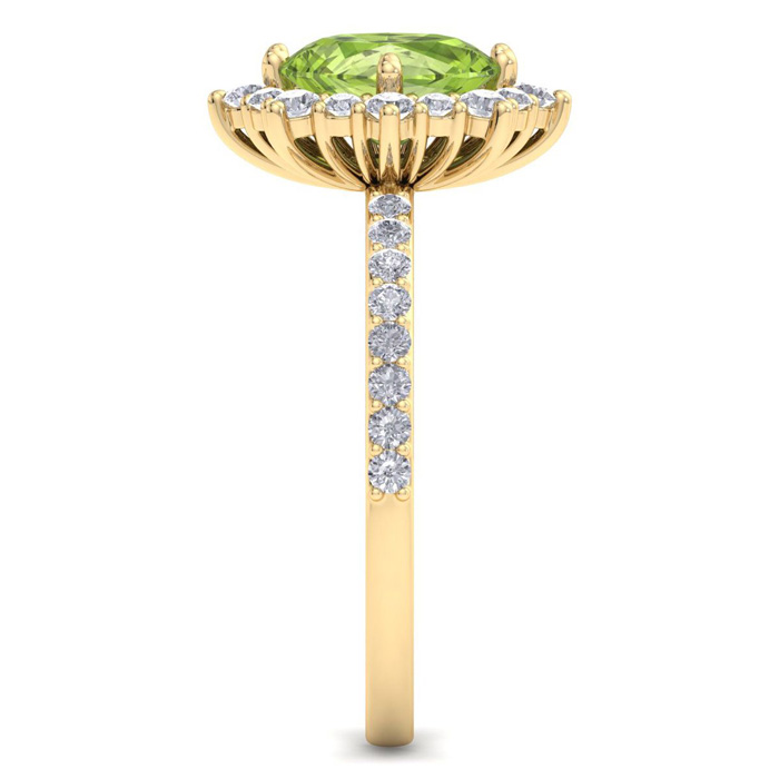 Retrograde Birthstones™ 2 Carat Oval Shape Peridot and Diamond Ring In 14K Yellow Gold