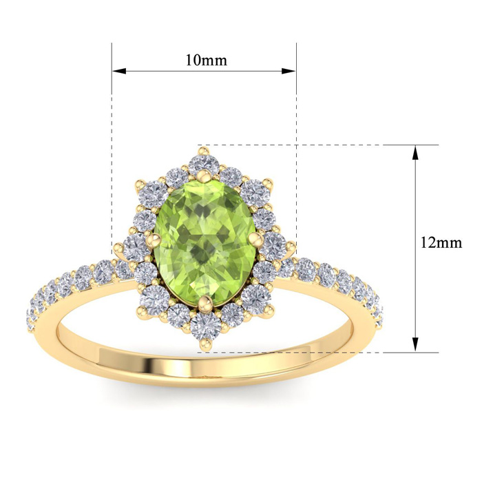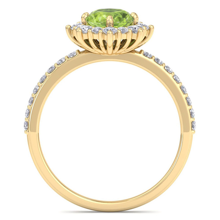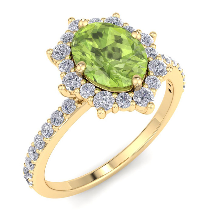 Retrograde Birthstones™ 2 Carat Oval Shape Peridot and Diamond Ring In 14K Yellow Gold