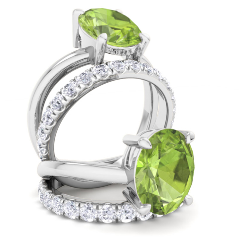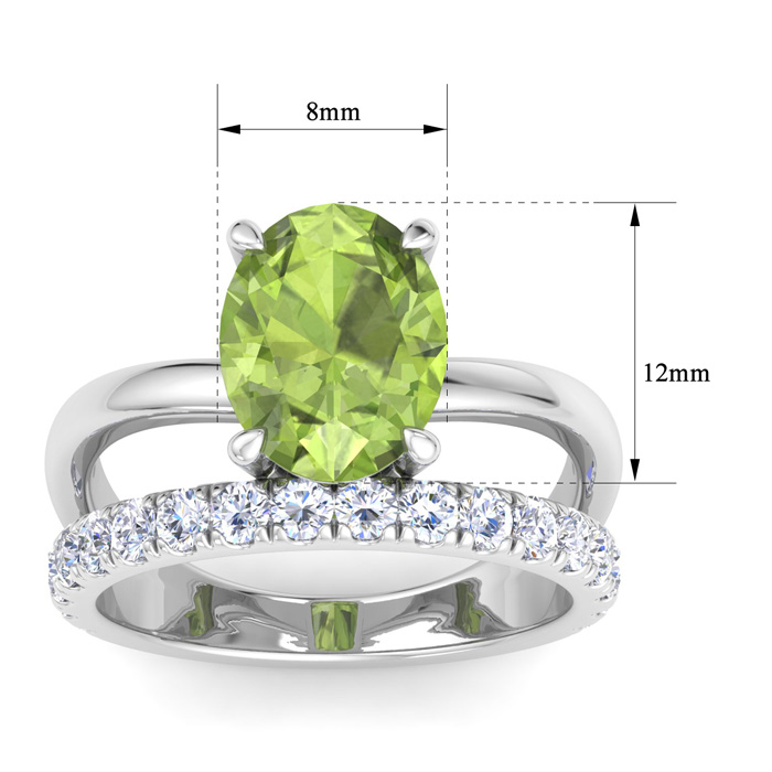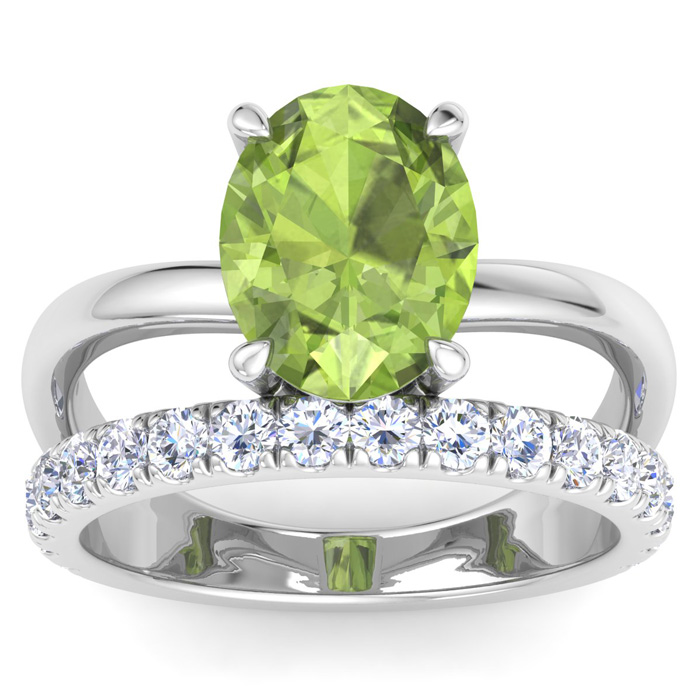 3 Carat Oval Shape Peridot and Halo Diamond Ring Plus Band In 14 Karat White Gold