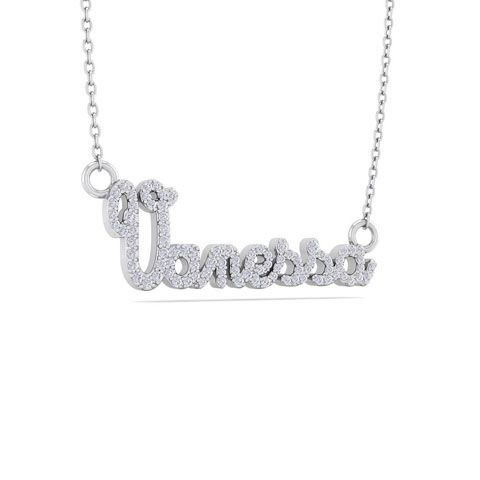 Personalized Natural Diamond Name Necklace In 14K White Gold - 7 Letters, 3/8cttw