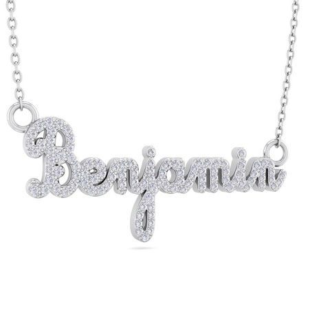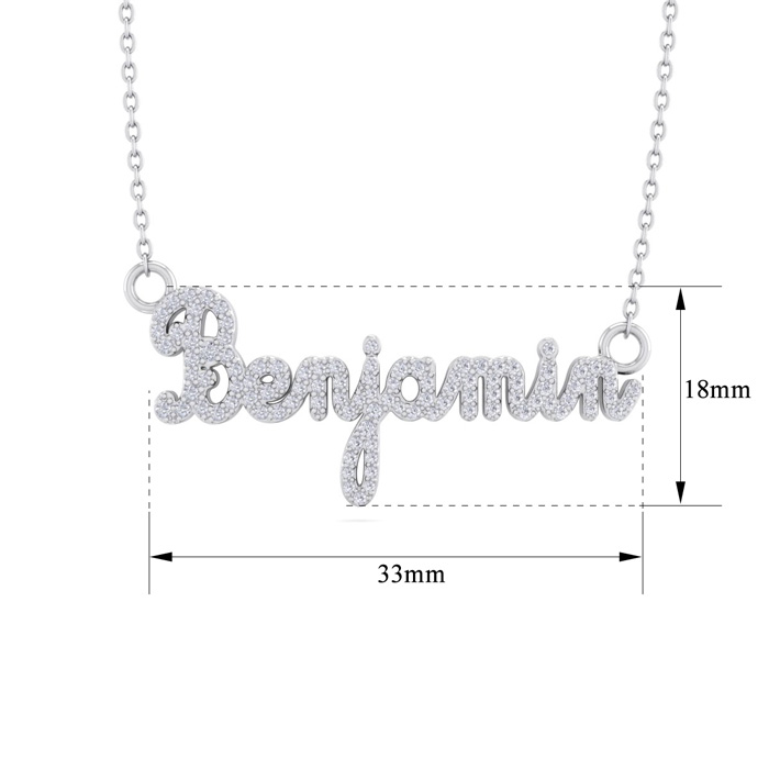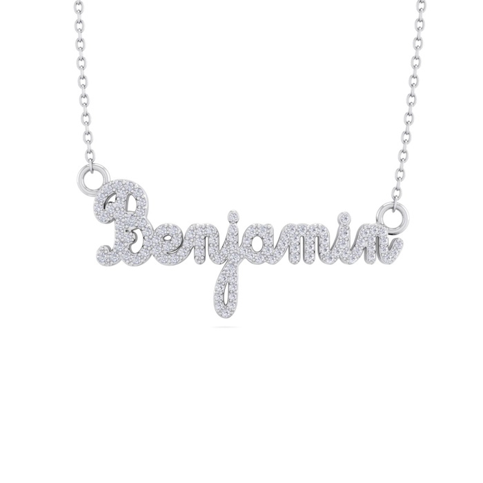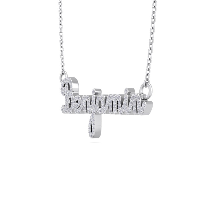 Personalized Natural Diamond Name Necklace In 14K White Gold - 8 Letters, 1/2cttw