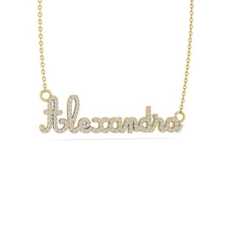Personalized Natural Diamond Name Necklace In 14K Yellow Gold - 9 Letters, 0.60cttw