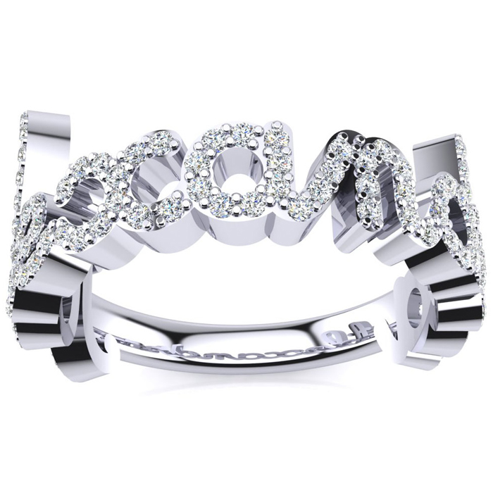Personalized Natural Diamond Name Ring In 14K White Gold - 9 Letters, 0.60cttw