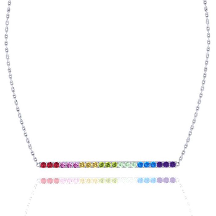 1 1/2 Carat Natural Gemstone Rainbow Bar Necklace In 14K White Gold