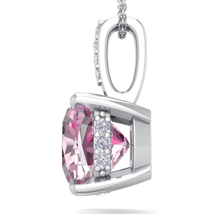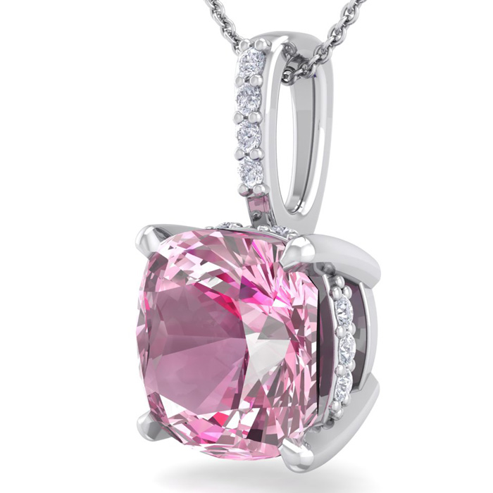 1 1/5 Carat Cushion Cut Pink Topaz and Hidden Halo Diamond Necklace In 14 Karat White Gold, 18 Inches