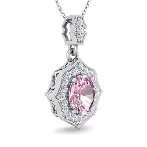 1 3/4 Carat Oval Shape Pink Topaz and Diamond Necklace In 14 Karat White Gold, 18 Inches