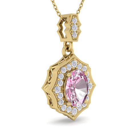 1 3/4 Carat Oval Shape Pink Topaz and Diamond Necklace In 14 Karat Yellow Gold, 18 Inches