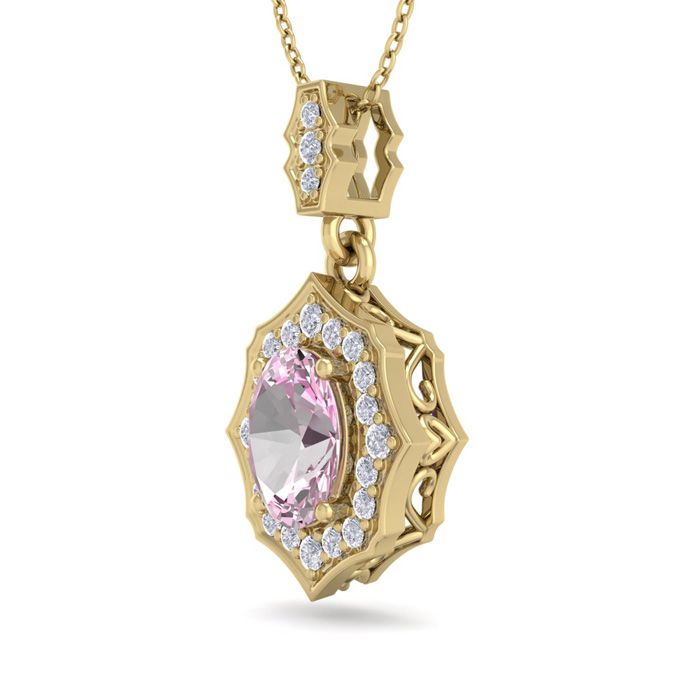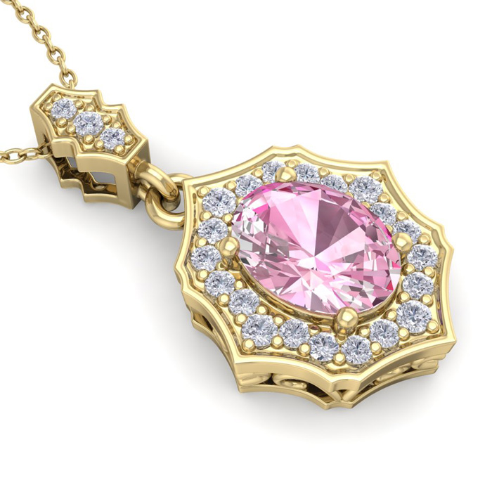1 3/4 Carat Oval Shape Pink Topaz and Diamond Necklace In 14 Karat Yellow Gold, 18 Inches