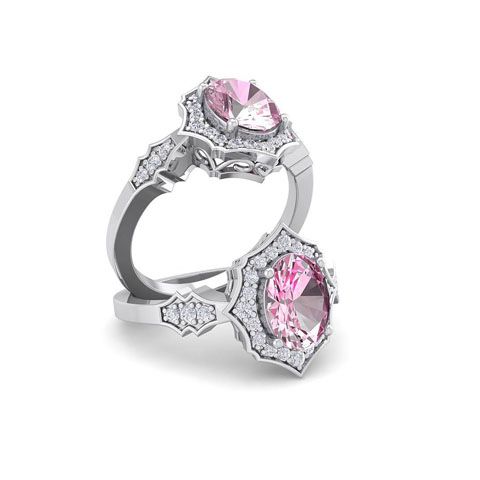 1 3/4 Carat Oval Shape Pink Topaz and Diamond Ring In 14 Karat White Gold