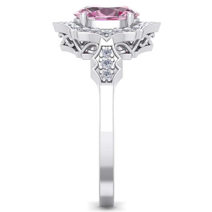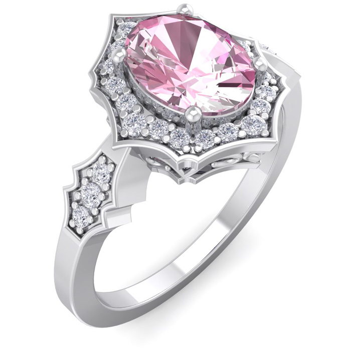 1 3/4 Carat Oval Shape Pink Topaz and Diamond Ring In 14 Karat White Gold