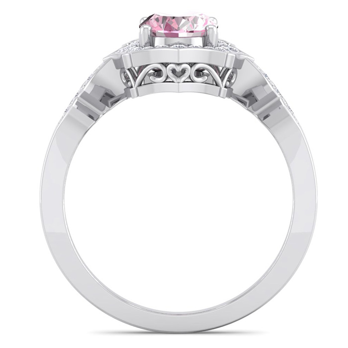 Retrograde Birthstones™ 1 3/4 Carat Oval Shape Pink Topaz and Diamond Ring In 14 Karat White Gold