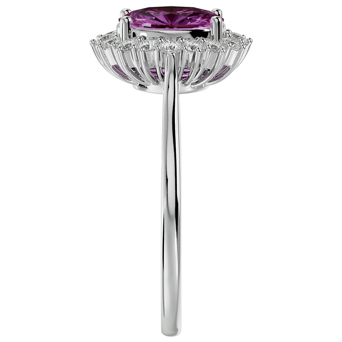 1 3/4 Carat Oval Shape Pink Topaz and Halo Diamond Ring In 14 Karat White Gold