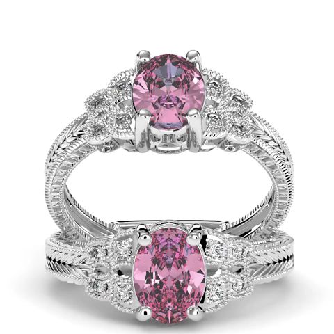 1 Carat Oval Shape Pink Topaz and Diamond Ring In 10 Karat White Gold