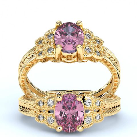 1 Carat Oval Shape Pink Topaz and Diamond Ring In 10 Karat Yellow Gold